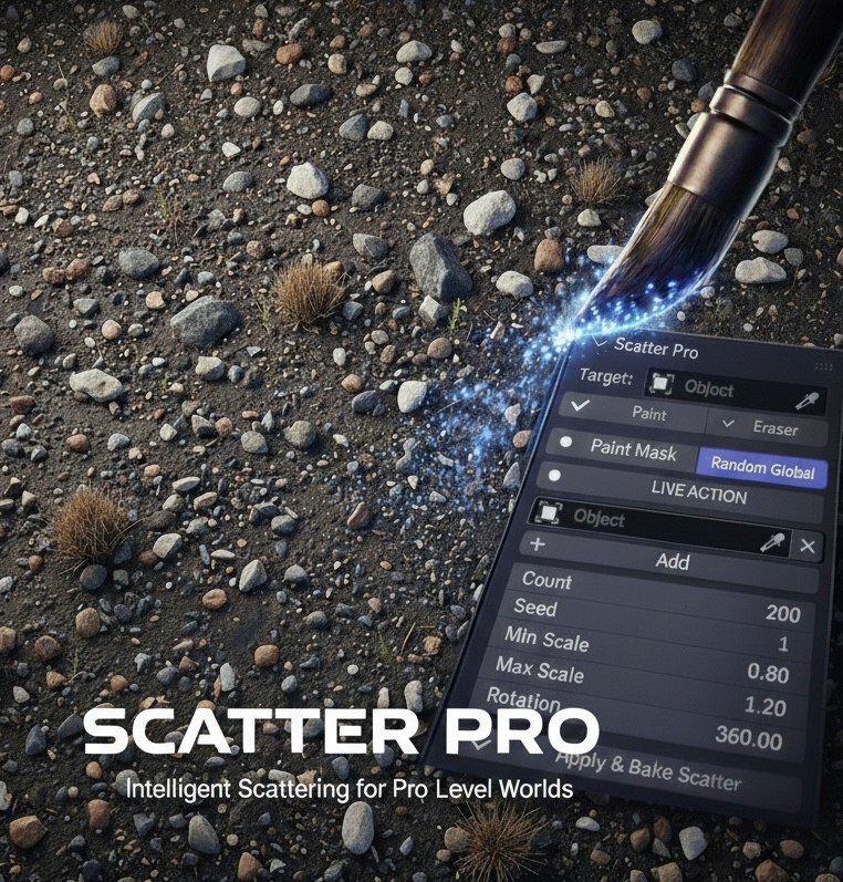 A fast and intuitive object scattering addon with live control over density, scale, rotation, and randomness.
