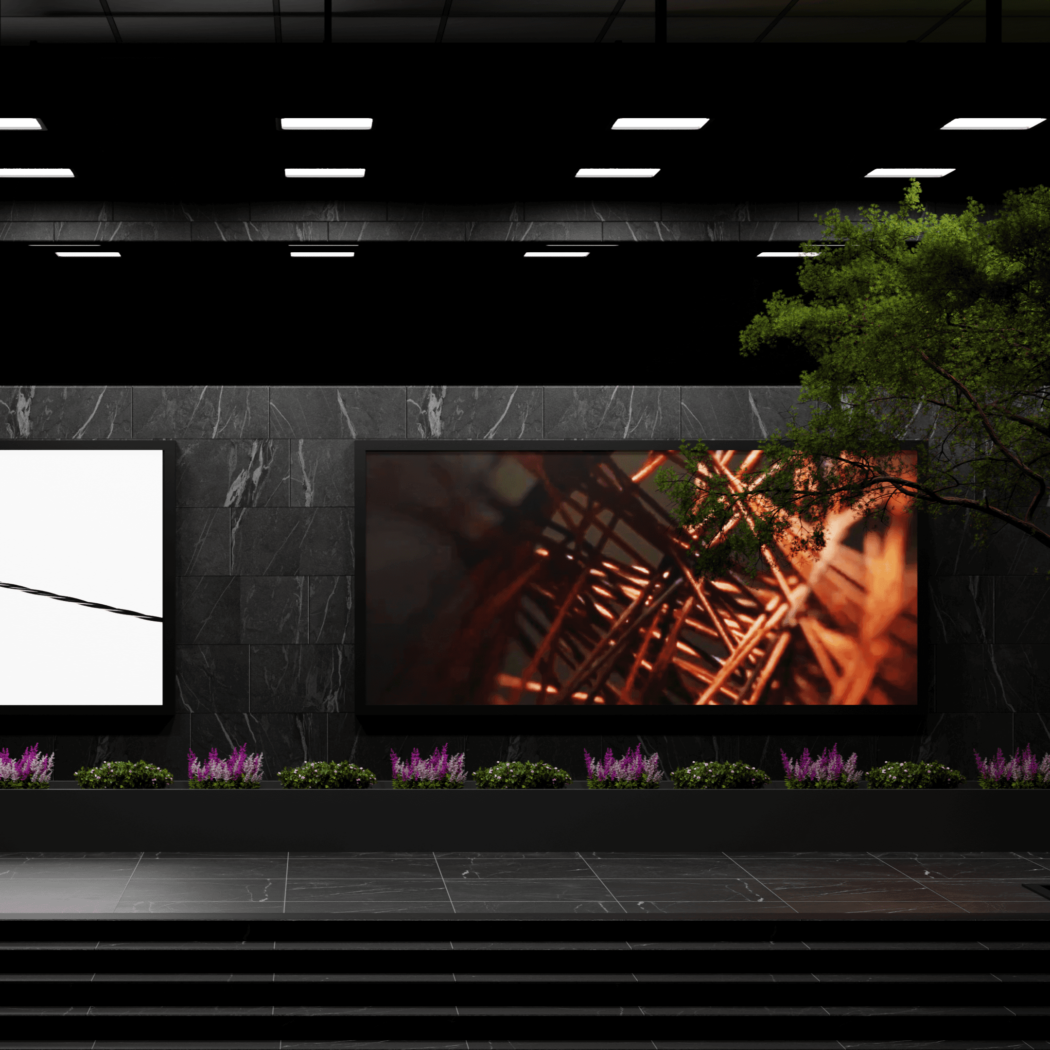 A minimal, high-contrast display mockup designed to highlight your work without distractions. The reflective surface adds depth, giving your visuals a polished, gallery-style presentation.