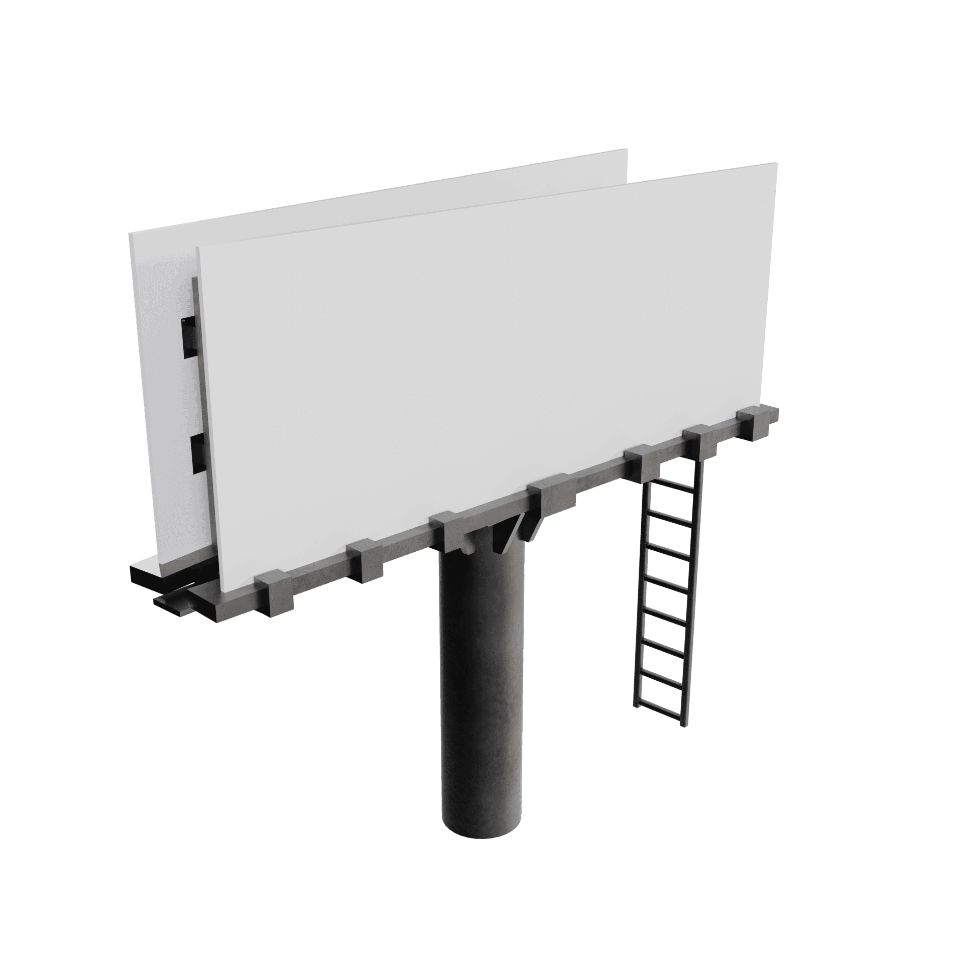 A double-sided billboard with a strong industrial frame, center pole support, and built-in ladder ideal for realistic outdoor or highway scenes.