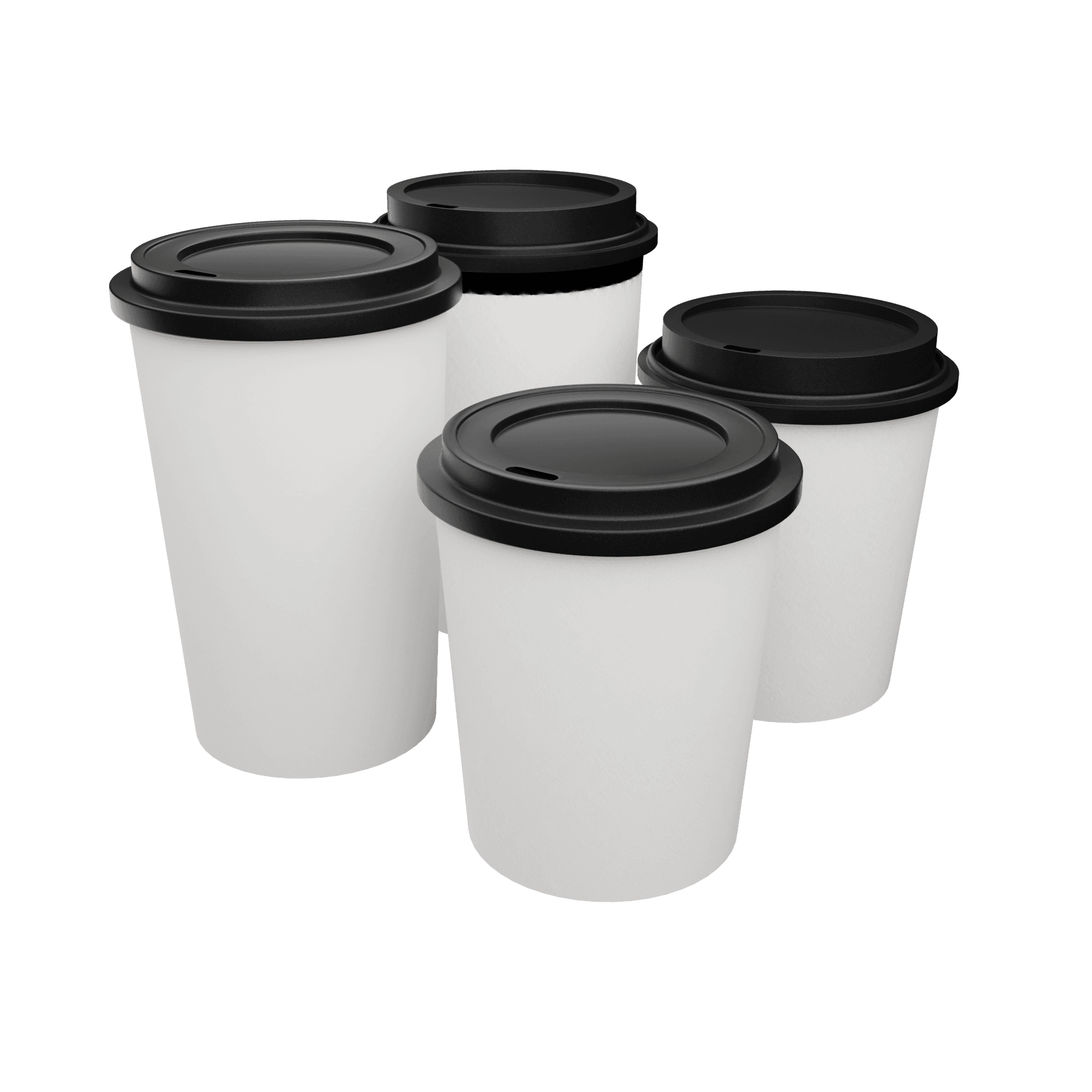A set of premium, minimal paper coffee cups with realistic lids perfect for branding, packaging, café scenes, and product mockups.