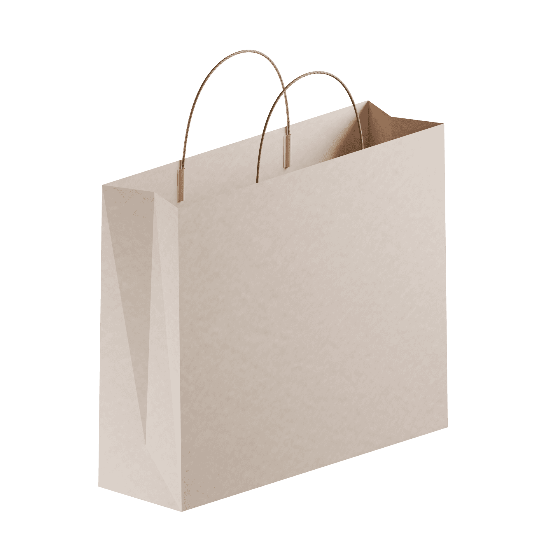 A clean, minimal shopping bag with soft paper texture and realistic rope handles perfect for branding mockups and product presentations.