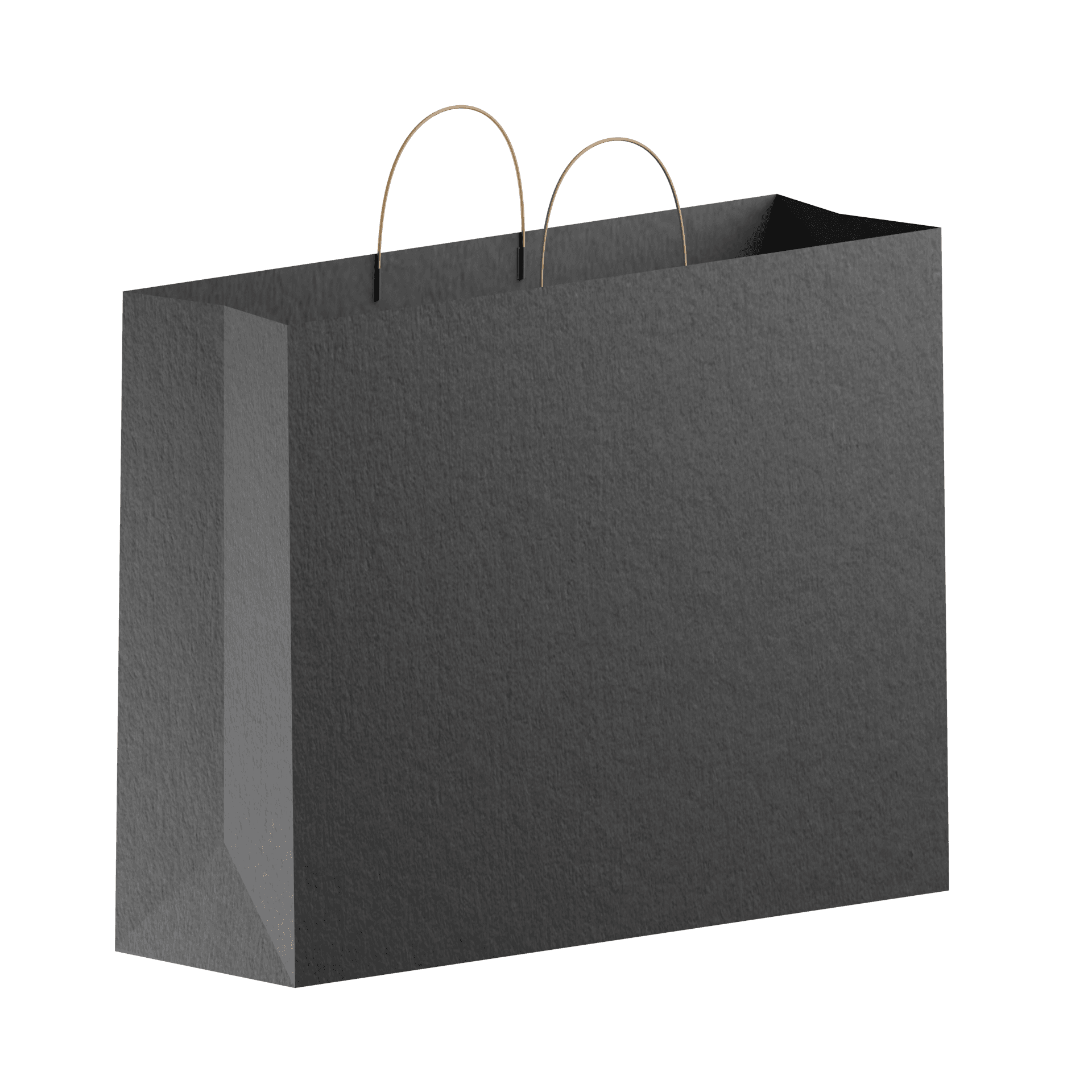 A large, premium paper shopping bag model with realistic texture detail and sturdy rope handles.