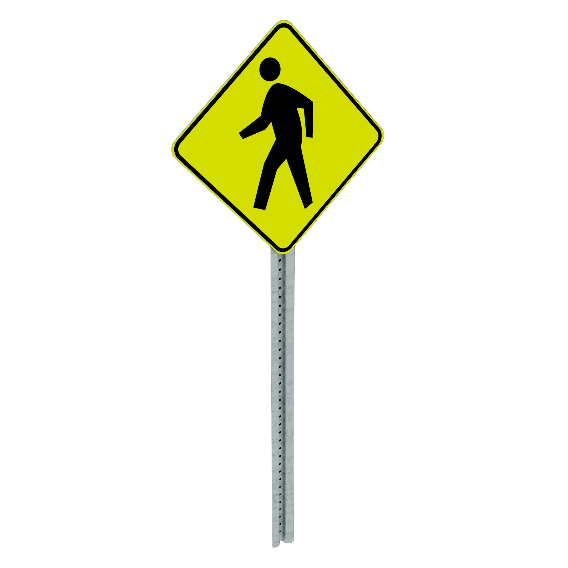 A realistic pedestrian crossing sign with a clean metal pole ideal for street scenes, city environments, and architectural visualizations.