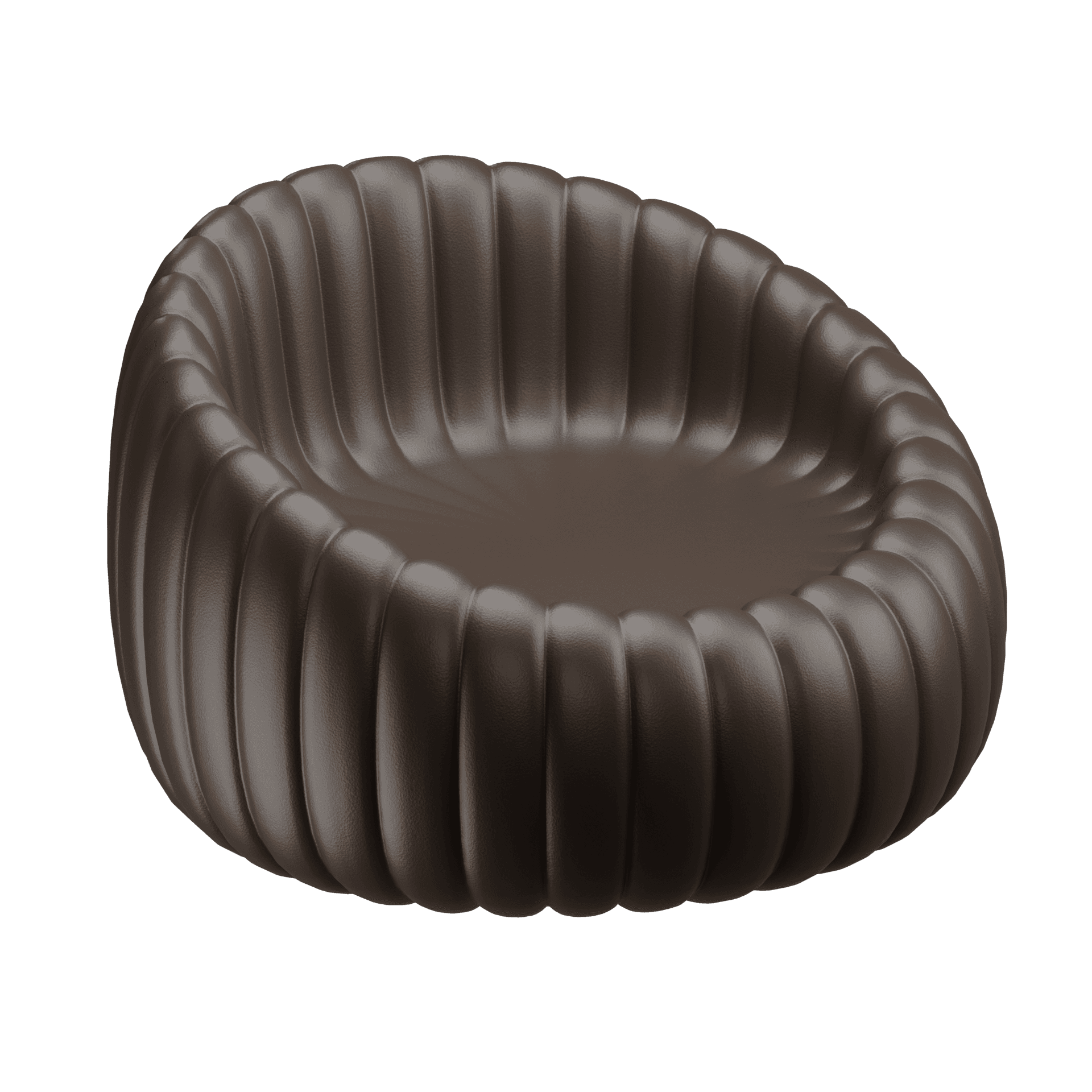 A soft, sculptural barrel-style chair with a plush, ribbed exterior perfect for modern interiors and high-end visualization.